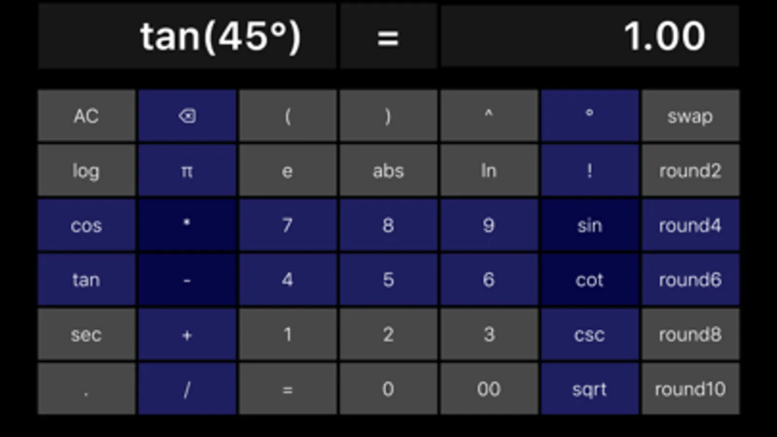 - It can calculate sin, cos, tan, cot, sec and csc functions of trigonometry.