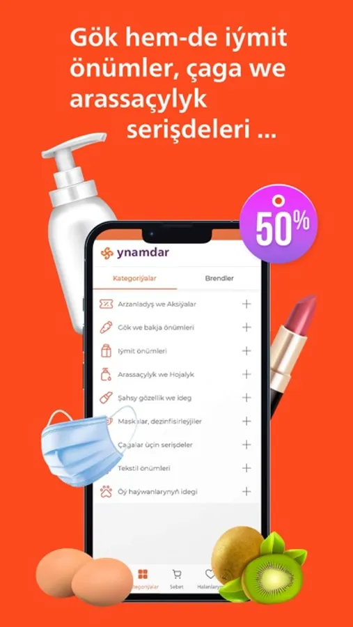 Harytlary gözläniňizde kategoriýalary, brendler bölümini ýa-da gözleg ulgamyny ulanyp bilersiňiz. Soň aňsatlyk bilen tapmak isleýän harytlaryňyzy bolsa "Halanlarym" sanawyna goşup bilersiňiz. Şeýle hem sargydyňyzyň soňky ýagdaýyny we nirededigini "Sargytlarym" bölüminden yzarlap bilersiňiz.