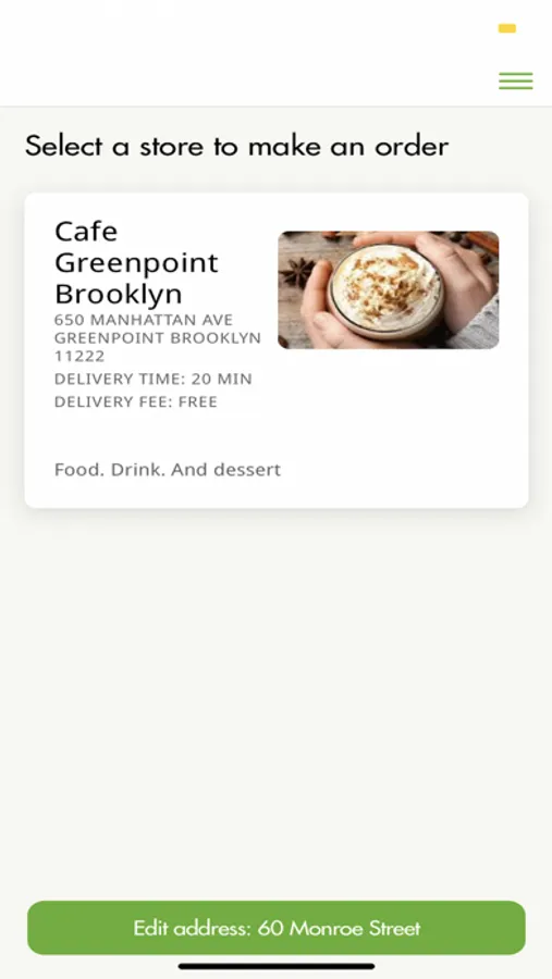 We have developed our own mobile ordering app for Cafe Greenpoint. Now you can place an order through your phone with the Cafe Greenpoint app. Skip the line at the register. Your order will be ready when you arrived at the store. Download now, and experience the new way to order your favorite food.