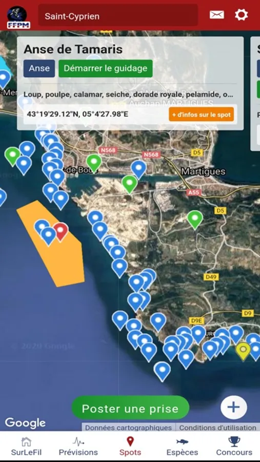 Véritable couteau suisse du pêcheur cette application vous suivra partout sur vos spots de pêche !
