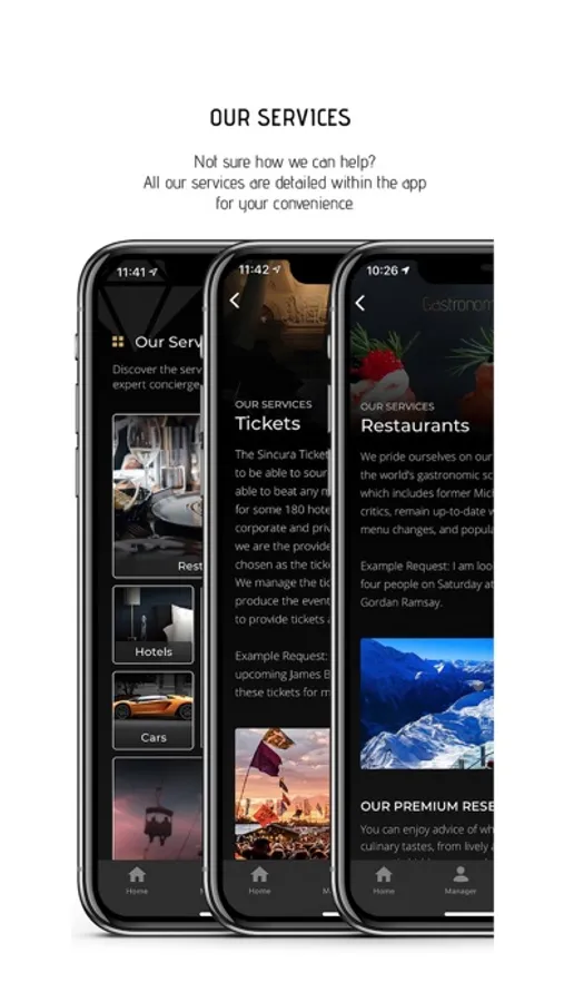 With the Sincura Concierge app, it's like having us in your pocket. From priority reservations at the most exclusive restaurants to luxury travel planning; VIP tickets and premieres to sold-out events, our app is your always-on concierge companion.