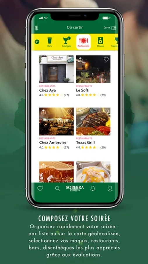 It lists the establishments and points of sale (restaurants, bars, nightclubs, etc.) of SOBEBRA products and offers you the best plan closest to you thanks to geolocation!