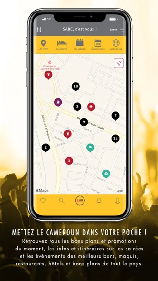 Est l’application du Groupe SABC qui vous donne la possibilité d’avoir les bons plans de votre ville. Où sortir, où boire, les points d’approvisionnement.