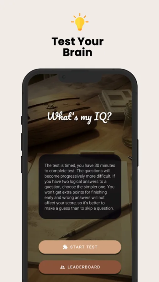 This is a fun and challenging way to test your intelligence. With our IQ test, you can see how well you can think, solve problems, and understand new ideas. You'll be asked a lot of questions, ranging from math problems to puzzles.