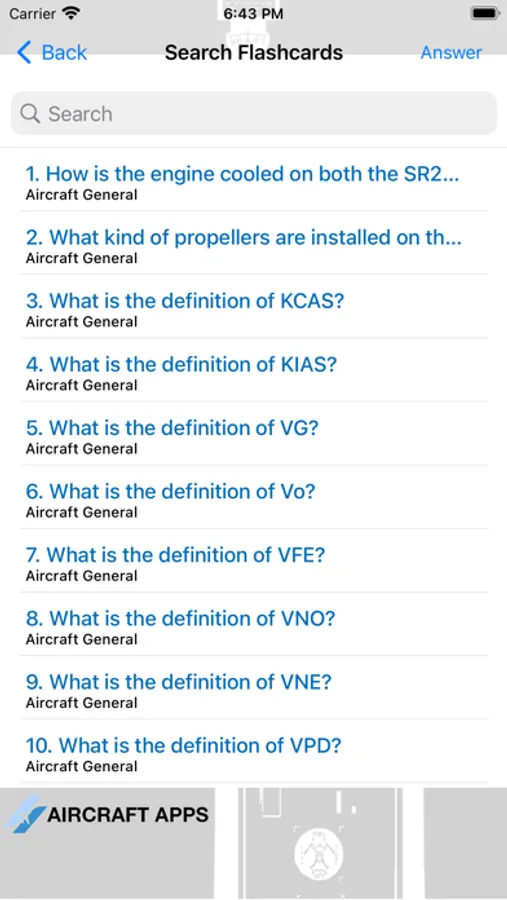 •Choose any aircraft system from a drop down menu and easily study technical questions about the airplane.