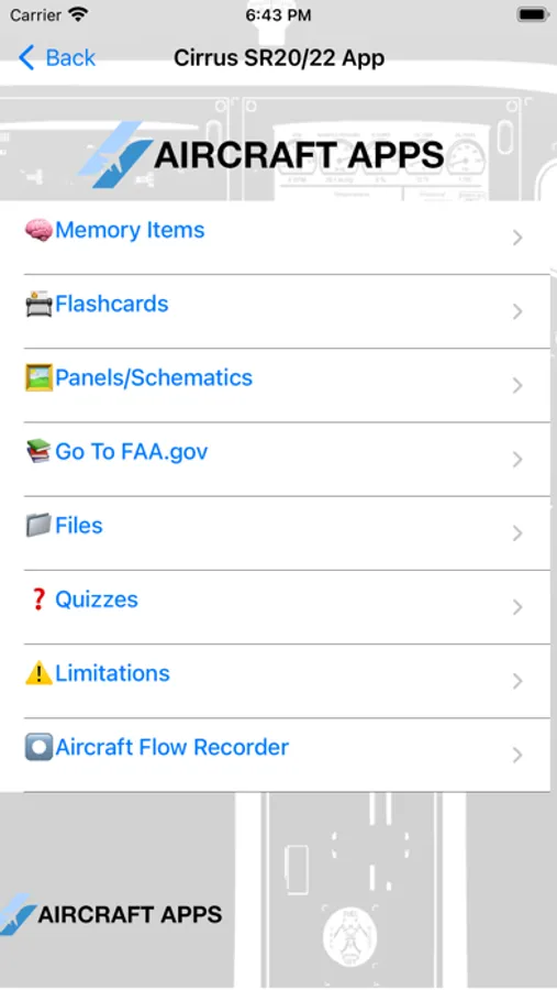 •Choose any aircraft system from a drop down menu and test your knowledge with a multiple choice quizzes. Take the quizzes with an optional timer and background noise to enhance your learning experience.