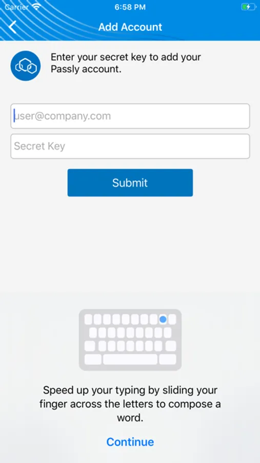 You can automatically provision the authenticator through your first time onboarding experience or at any time through your online profile if you have a Passly account.