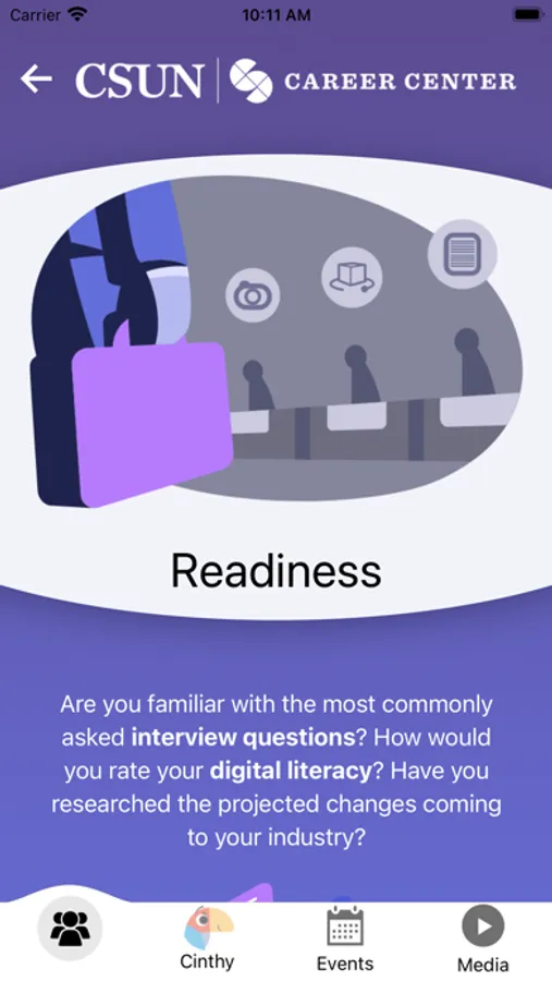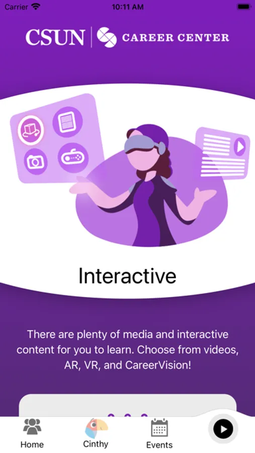The CsunCareer app offers the opportunity to learn more about the CSUN Career Center and learn new skills in a fun and interactive way.