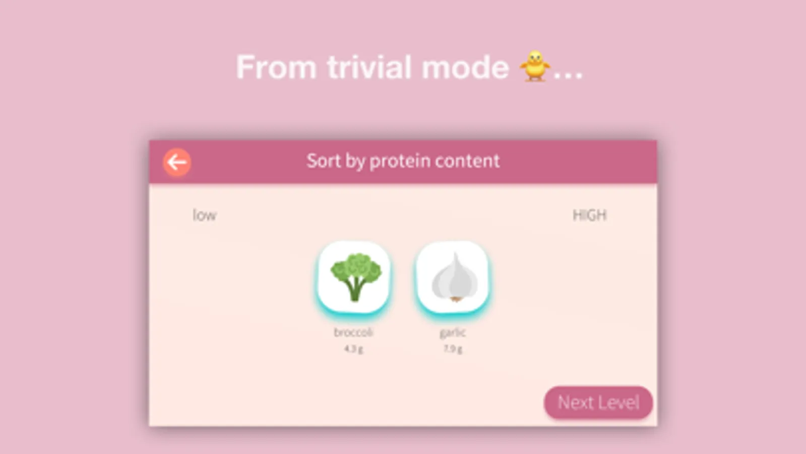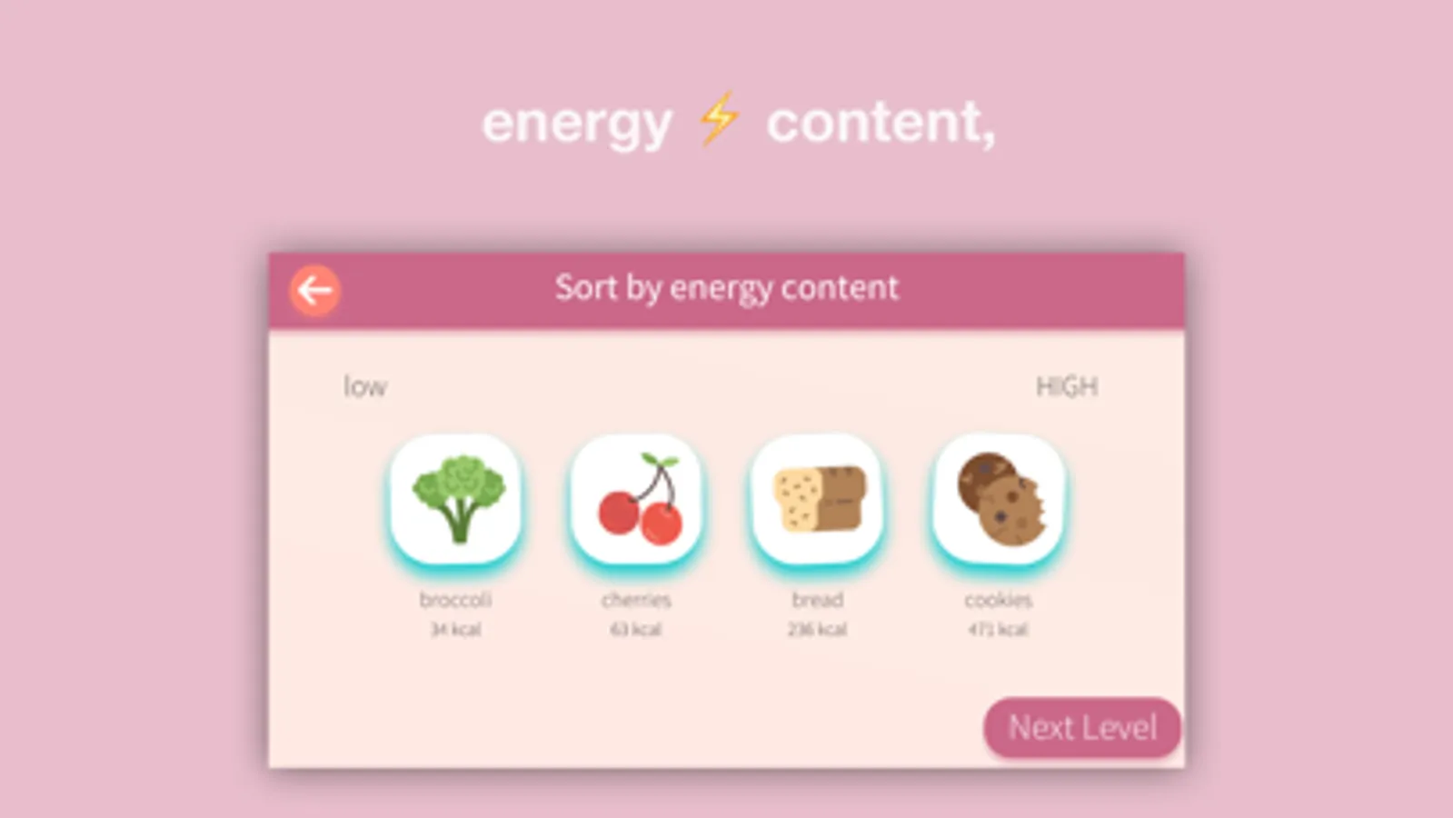 • You learn about food by sorting it based on a given criteria: calories, fat, protein, and more