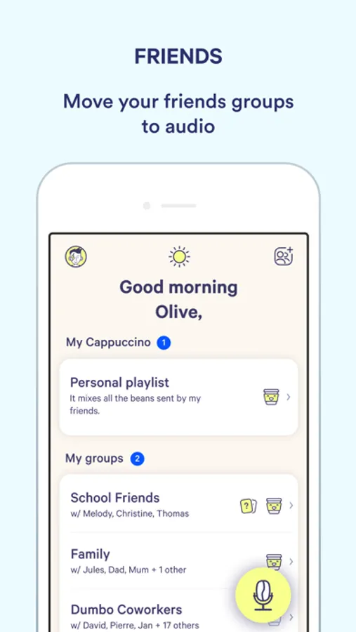 Listen to your Cappuccino, a mix of your friends’ fun stories with background music.