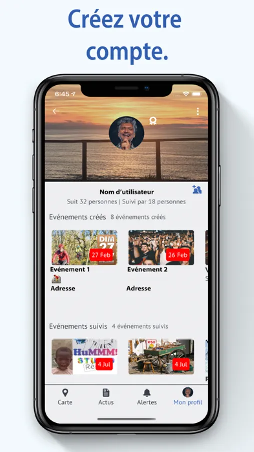 Après rechercher et publier, la troisième fonctionnalité de Kéfa est la possibilité d'ajouter et de suivre des profils (comme des associations, des comités des fêtes ou tout autre instance susceptibles de créer des événements), pour être alerté dès qu'un nouvel événement proche est créé.
