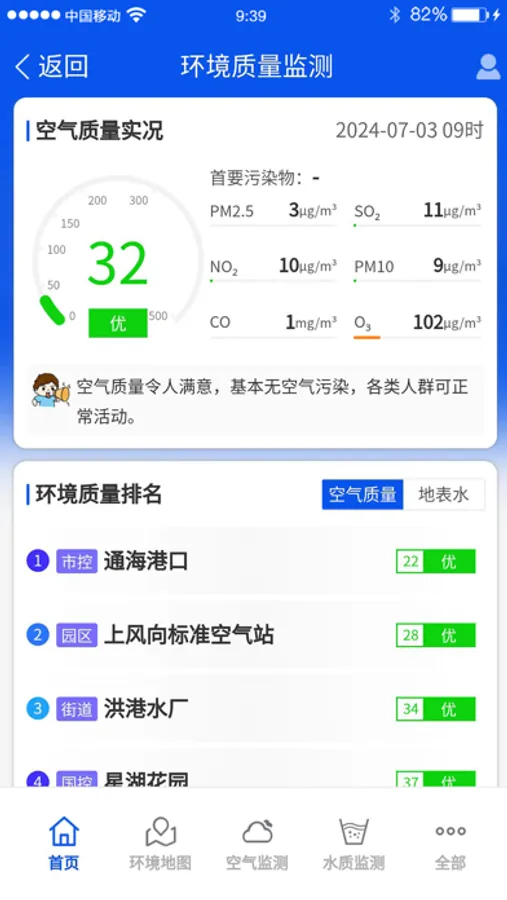 环境监控预警包含污染源在线、大气监测、环境质量、应急危化品、法律法规、现场巡查以及数据中心等菜单,用户可根据自己需求自由切换调整菜单的顺序,可移动巡查,实时查看法律法规和危化品相关信息。程序通过地图和图表两种展现方式实现数据可视化,可轻松查看各关注点的历史数据和当前各项污染物浓度数值。