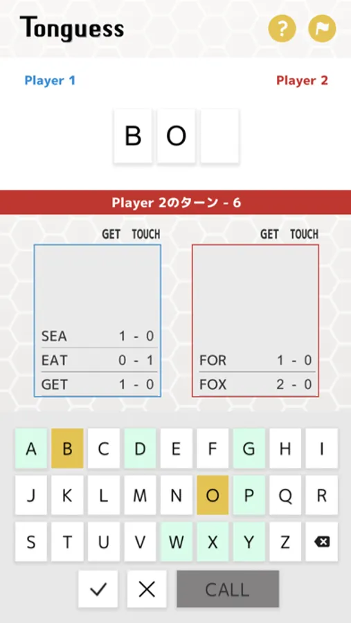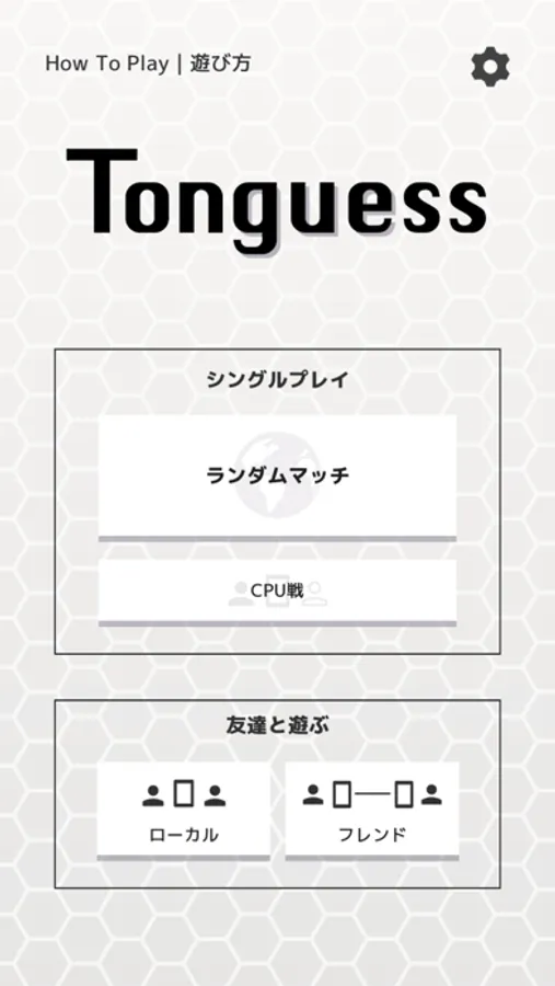 Tonguessは、2人のプレイヤーによる英単語当てゲーム。3文字または4文字英単語から自分の答えを設定し、交互に相手の答えを推理する。予想と答えの比較情報とボキャブラリーを駆使して、数千種類の英単語の中から相手の答えを見つけ出せ!