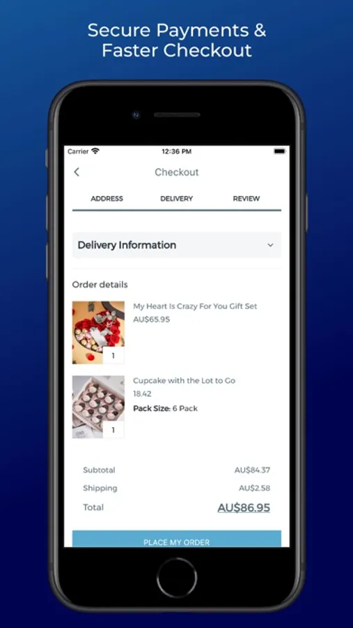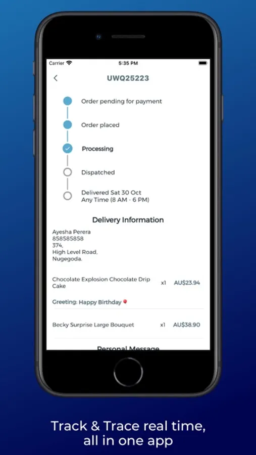 Get real time order tracking and delivery notifications. Get access to your purchase history at any time.