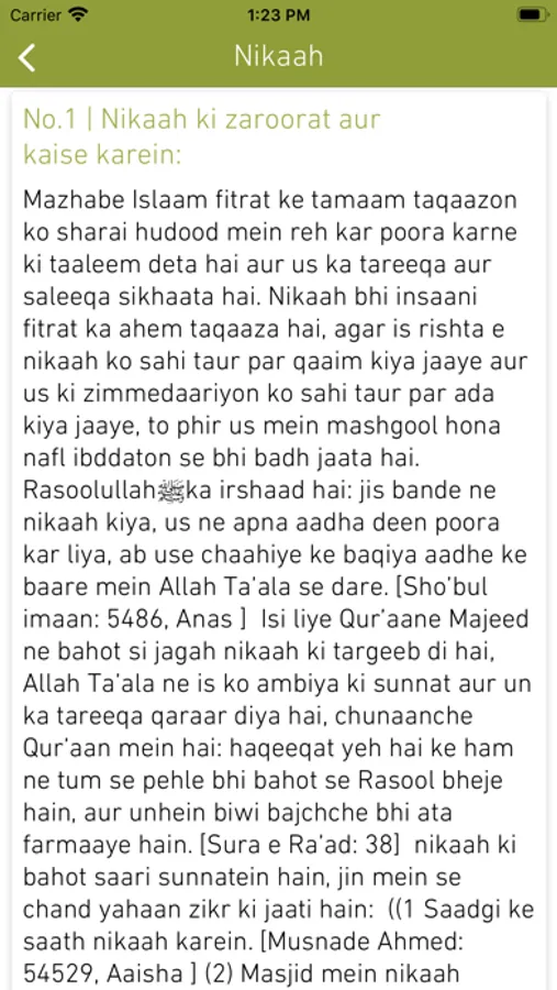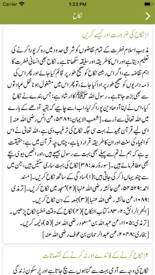 Idaara-e-Deeniyat is pleased to announce Tohfa-e-Nikaah application for iOS devices. The application provides the guidance for performing nikaah as per the sunnah of prophet Mohammad (peach be upon Him). The app highlights various virtues, advantages and masael generally encountered by people.