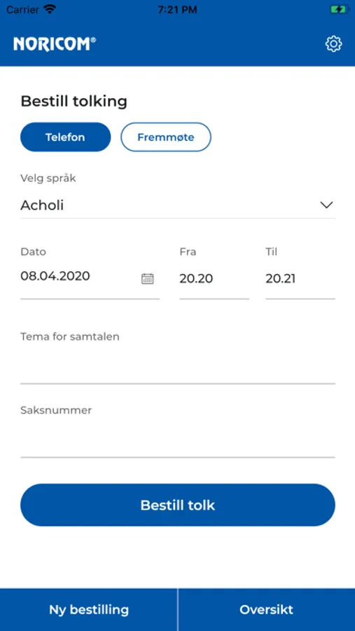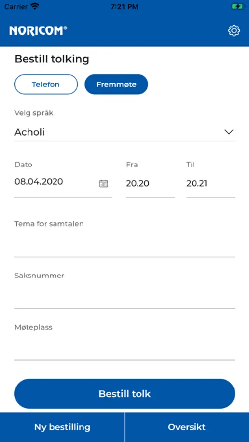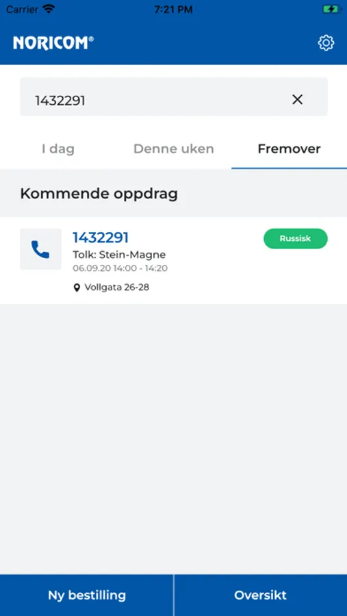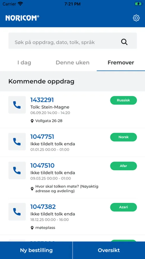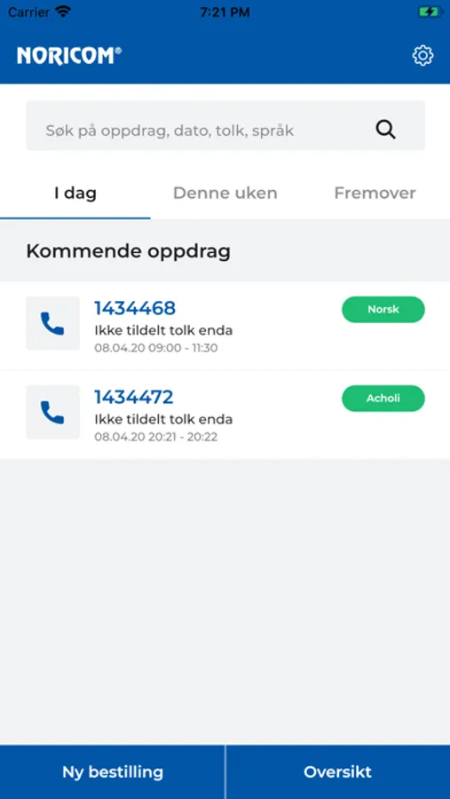 Kundeapp for bestillere hos Noricom. Bestill tolk raskt og se informasjon om kommende oppdrag.
