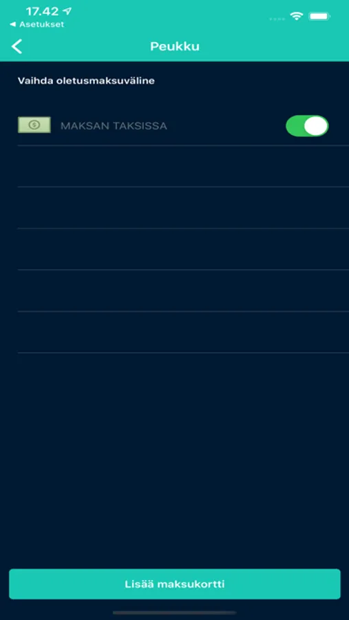 Peukku kertoo hinta-arvion ennen tilauksen lähetystä, jos annat myös Peukku-kyydin kohdeosoitteen. Voit lisätä maksukorttitietosi Peukku -sovellukseen ja maksaa matkasi nopeasti ja turvallisesti käyttäen sovellusta. Matkan päätteeksi Peukku lähettää halutessasi kuitin sähköpostiisi. Näet myös vanhat matkasi ja maksukuittisi Peukku -sovelluksesta.