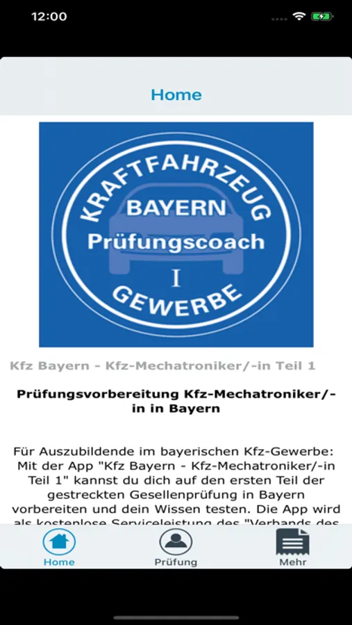 Mit der App "Kfz Bayern - Kfz-Mechatroniker/-in Teil 1" kannst du dich auf den ersten Teil der Gesellenprüfung in Bayern vorbereiten.