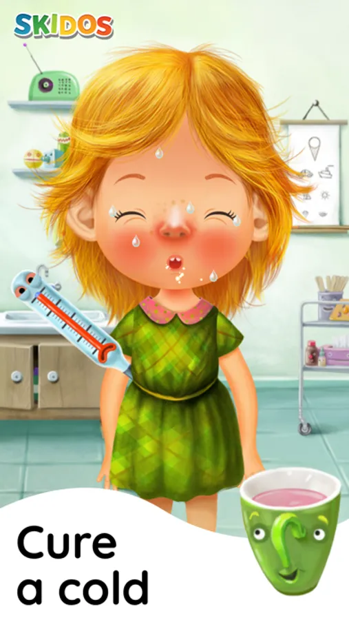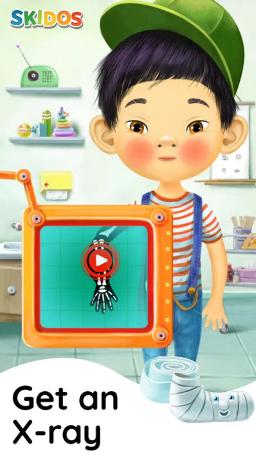 SKIDOS Doctor is a fun role-playing game that will let your child play a doctor and treat patients. Your child can try out different medical tools and help 3 cute characters to get healthy again. Whether they have a running nose, a hurting ear, a broken bone or toothache - we can easily cure them.