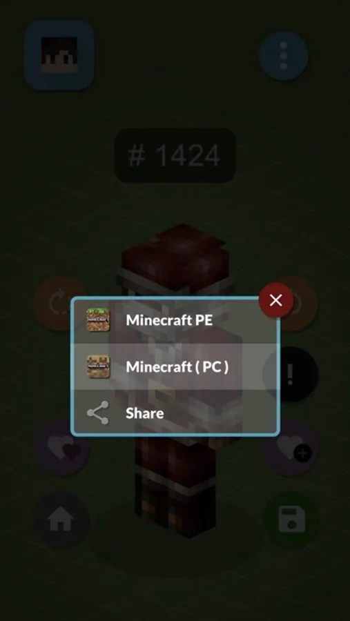 All Minecraft skins are shown in 3D. You can rotate them in 360 degrees. With just one tap you can export it to MCPE, Minecraft PC, Gallery, or share with your friends.