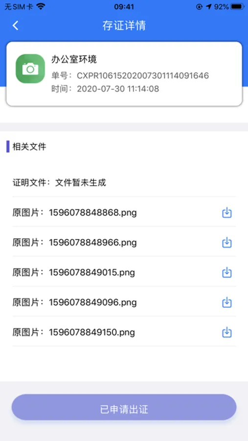 存信网保存的证据,公证处依法出具公证书,实现一站式互联网公证服务。用户不用再填写任何书面材料,通过存信网APP软件存证后,可以直接申办领取公证书。