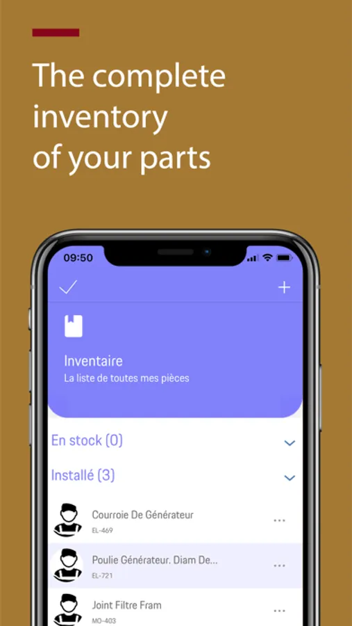 INVENTORY - don't waste time looking for your parts. You reference all the parts of your car. Those in stock, to order, to renovate, ... With a reference number and a location, you know exactly where they are. In addition you have the financial value of your inventory. What a time saver!