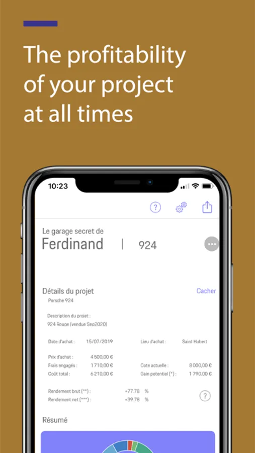 FEES - Ferdinand also becomes your accountant. Keep the list of your costs incurred in your restoration up to date, scan the invoice, etc. At any time, you will thus have the total cost of the restoration and even better; Ferdinand calculates the profitability of your investment for you!
