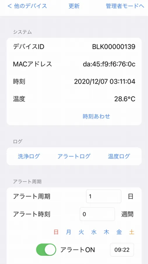 またアラームの周期、時刻を本アプリから設定することもできるため、店舗ごとの環境、ビールの種類等によって定期洗浄間隔を変更することもできます。