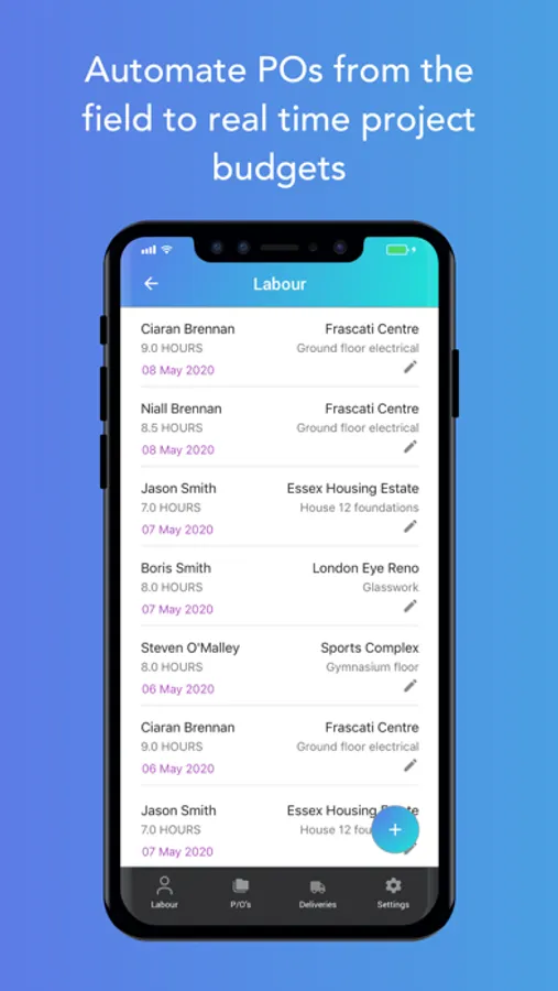 • Log Labour hours to project & phase (works offline)