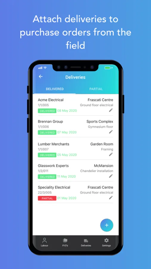 • Log Deliveries linking them to the purchase order (works offline)