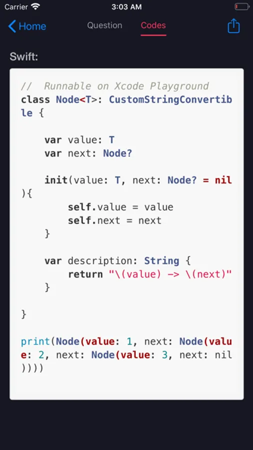 Note: For now, all data structure and algorithm is finished by Swift. It is promoted for all the users to do it using other languages like python, C, C++, C#, Go, Java, PHP, Javascript and so on. Also submitting the problem & solution code and recorrecting the exist code is welcome.