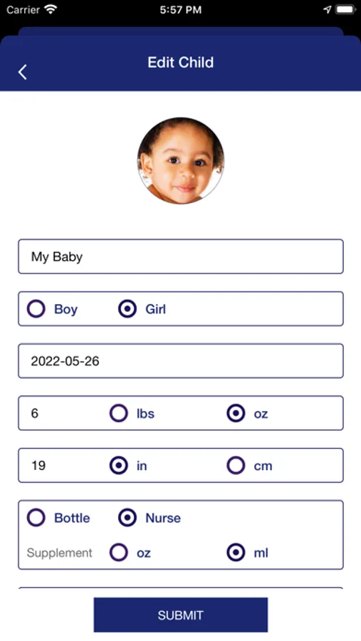 You can upload your baby's image and fill in their name. The app also features a Baby Name Picker option in case you haven't decided yet. When you sign in, you record the feeding method, whether your baby is a boy or a girl, their birthday, and weight either in lbs. or oz. You can immediately start recording if your little one is happy, sad, or sick. You can compare with the previous day and previous week averages and view the data to look for trends.