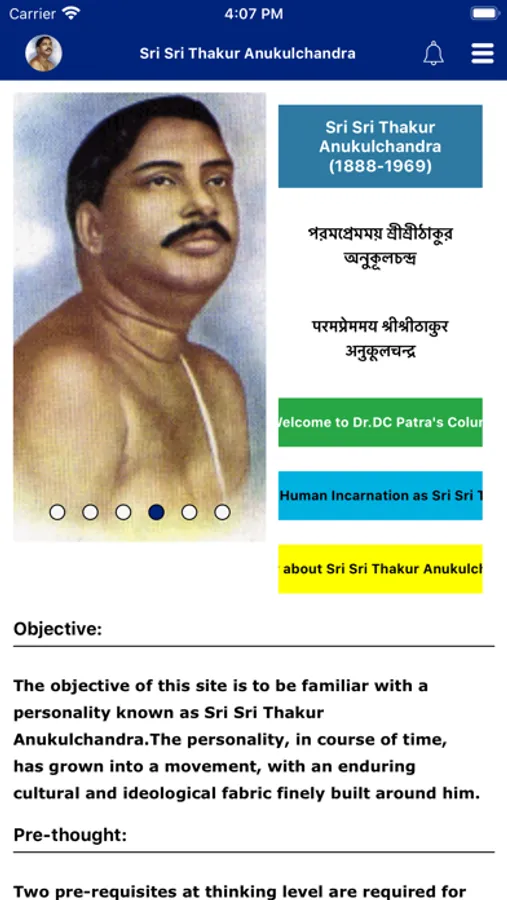 Sri Sri Thakur Anukulchandra, the advent, who descended through the mercy of providence due to the cry of existential crisis and served normally with his own urge as a man. He was a man, the holy man, the loving embodiment in the service of existential propitious bloom. He was prophet, who imparted existential upliftment with personal effulgence of unity to the people with compassionate thrill of life.
