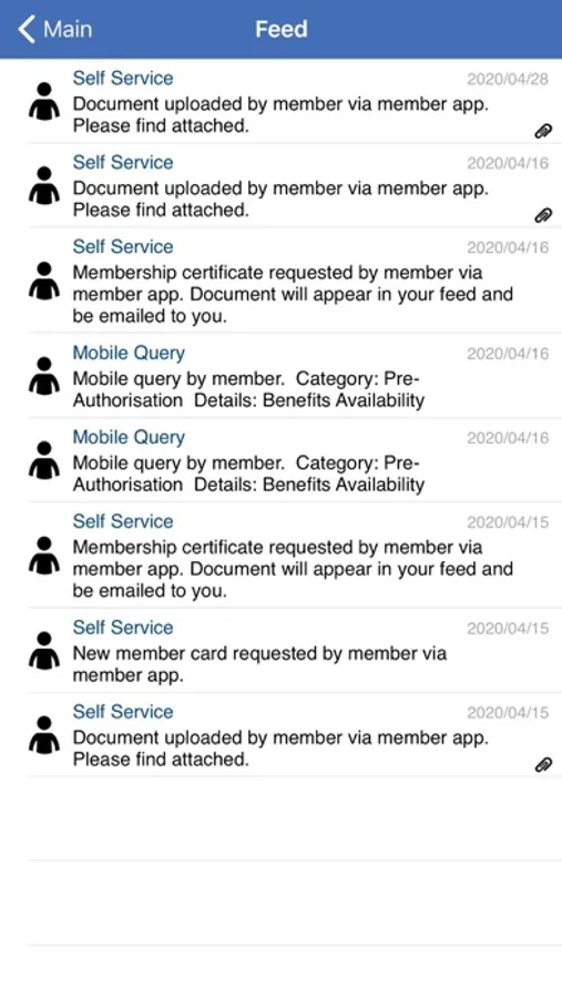 Information Feed: A list of all recent interactions between yourself and FBC Insurance including calls logged and recent use of benefits.