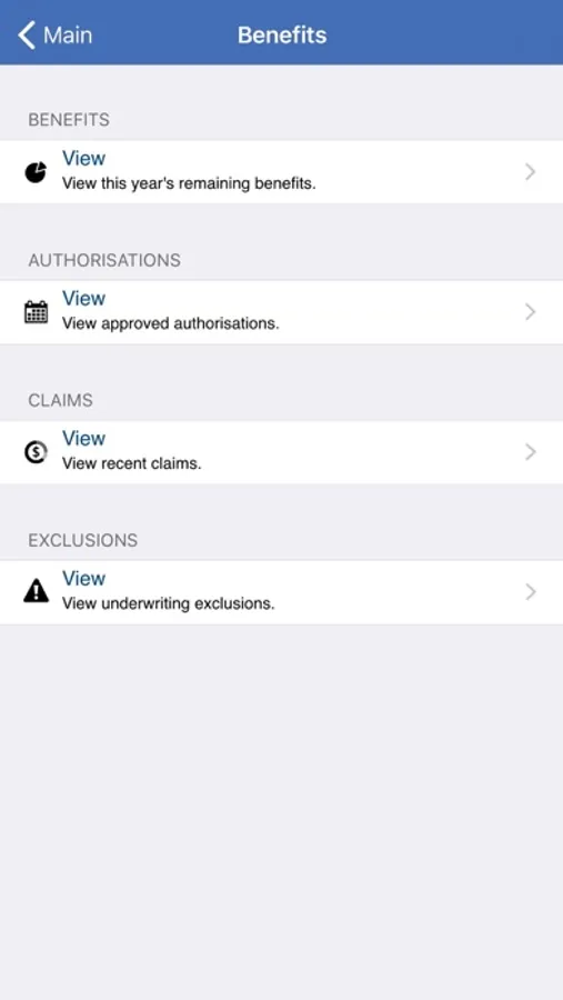 Benefits: Easy to read information of benefits and important information regarding access to the benefits.