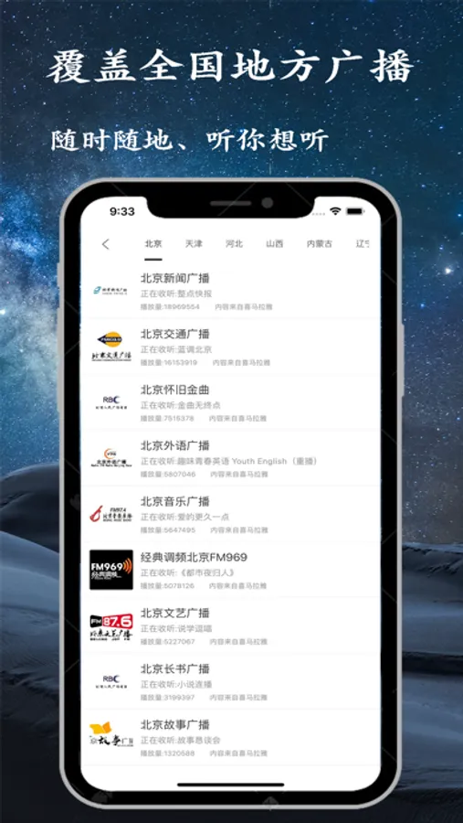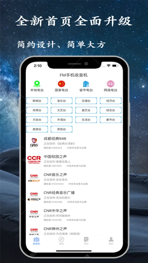 5、本App使用了先进的解码引擎,及时网络状况很差也能收听到高质量的电台广播。