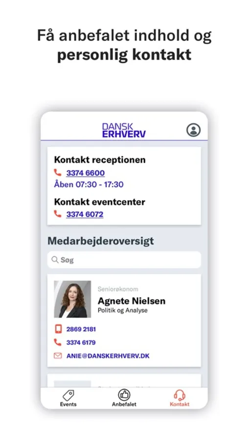 Velkommen til Dansk Erhvervs app, der holder dig opdateret på vores spændende events og kurser. Du logger ind med den profil, du har oprettet på vores hjemmeside. Nemt, enkelt og en forbedret oplevelse for dig. Du vil løbende modtage nyt indhold i appen, hvor du også kan få diverse nyheder og tweets fra Dansk Erhverv.