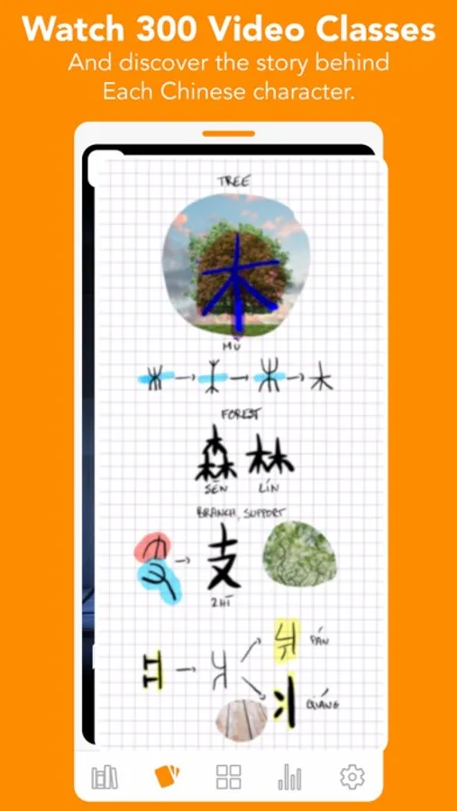 Our app offers an extensive library of 300 immersive video classes that bring the story behind each character to life, providing you with valuable insights, examples, and mnemonic tips. Dive deep into the etymology, history, and cultural significance of each character, enhancing your understanding and facilitating your memorization of Chinese characters!