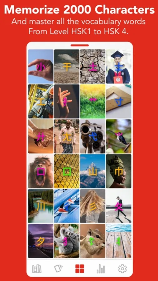 Immerse yourself in the beauty of Mandarin Chinese characters. Each Flashcards is illustrated by a meaningful picture, and each tone has its own color to reinforce your learning through visual cue and repetition. Our 1500 carefully designed flashcards will help you to gradually memorize all the Mandarin vocabulary words from HSK 1 to HSK 4. After a few swipes, you will already start to grow your vocabulary up and improve your Mandarin Chinese skills.