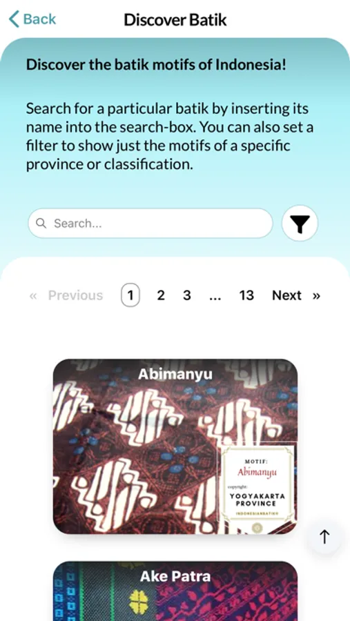 It is designed as a digital platform to showcase and communicate the exceptional cultural values of Batik tradition that is protected by UNESCO as a legacy of humanity. It serves also to help tourists, both domestic and international ones, to recognize the exceptional values of Batik and to foster cultural tourism in Indonesia.