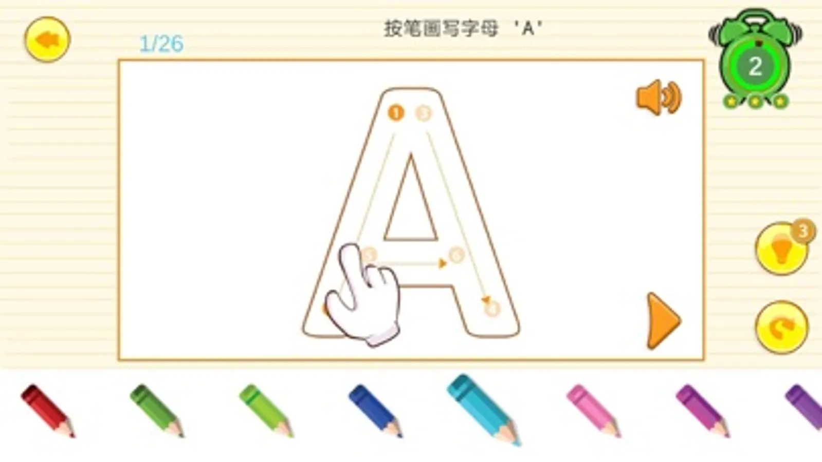帮帮龙英语趣味学堂,幼儿英语启蒙课程,包含英文字母大小写,以及数字,和一些常用单词的书写训练。