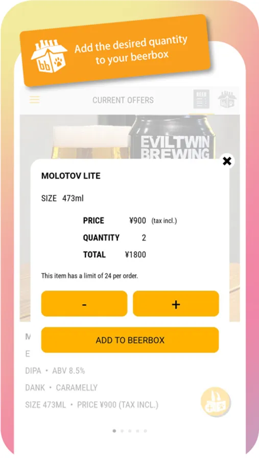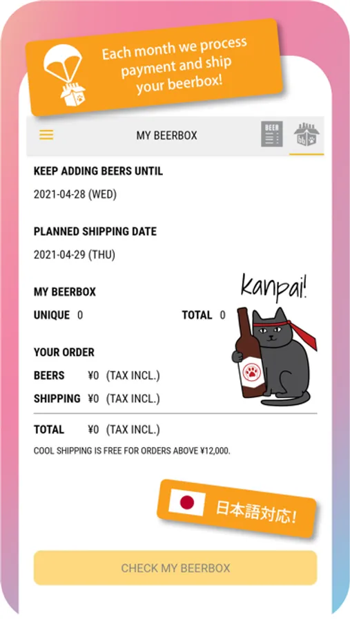 毎日新しいビールのオファーが追加されて、気に入ったビールを欲しい分だけ自分の「ビアボックス」に追加できます。