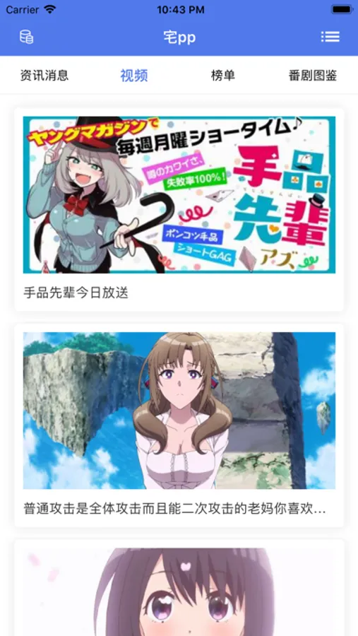 1.宅PP为服务二次元爱好者而诞生,提供动漫最新最快的资讯、视频、内容。不仅是个季新番资讯。未来新番也会有第一时间的预告。将来还会不断扩大,为制霸宅圈的梦想而不断提升。