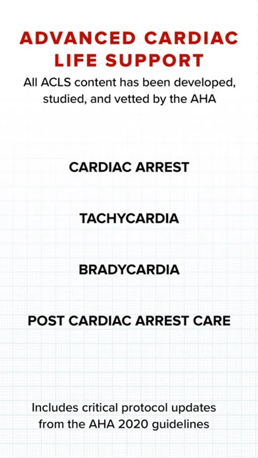 The AHA ACLS app is the only one to have all content vetted by both the AHA science team and practicing Harvard-affiliated physicians. It also features the latest 2020 release of AHA recommendations for ACLS.