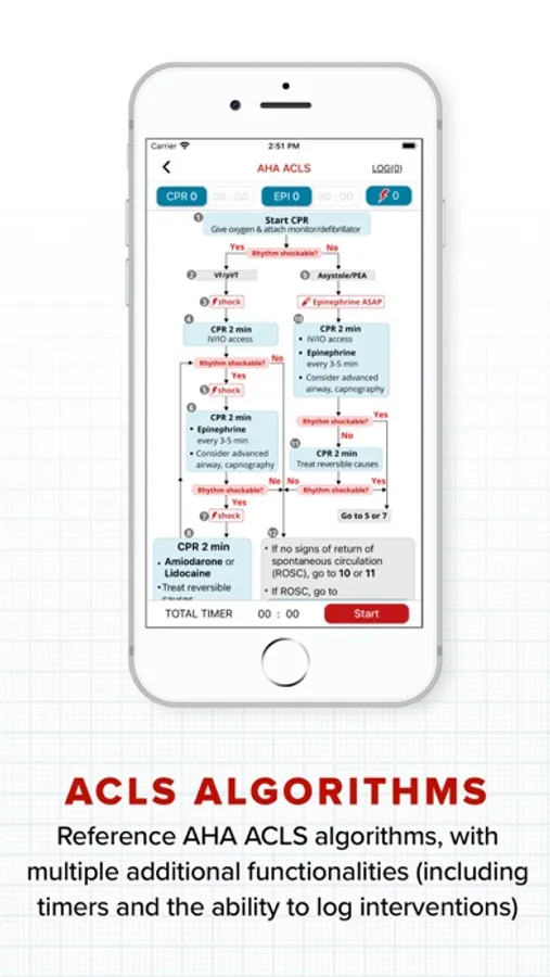 - Intuitive design to rapidly access 4 ACLS algorithms (i.e. cardiac arrest, tachycardia with pulse, bradycardia with pulse, and post cardiac arrest care)
