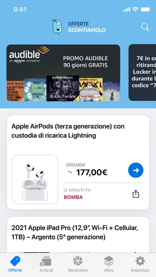 Sono centinaia le offerte che vi proporremo, ogni giorno, sempre scelte dalla nostra redazione anzichè un Bot automatico come fanno molti.