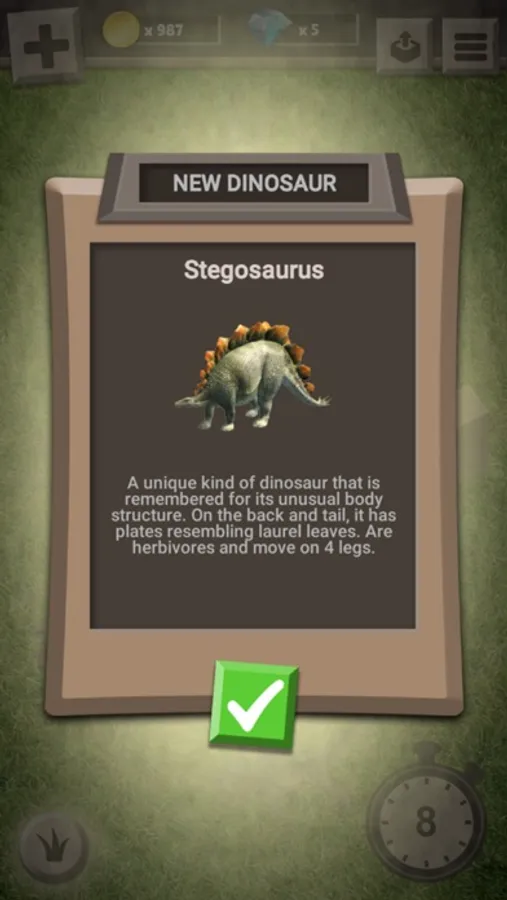 Discovered dinosaurs are saved in your collection! You can always read the cognitive information about each of them.