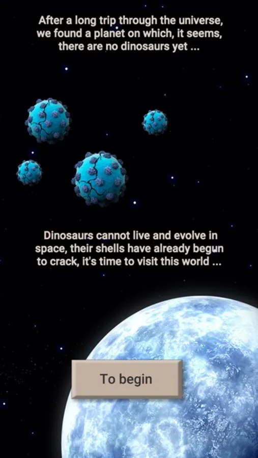 From the logbook - After a long journey through the universe, we finally found a planet on which, it seems, there are no dinosaurs yet ... It's time to visit this world.