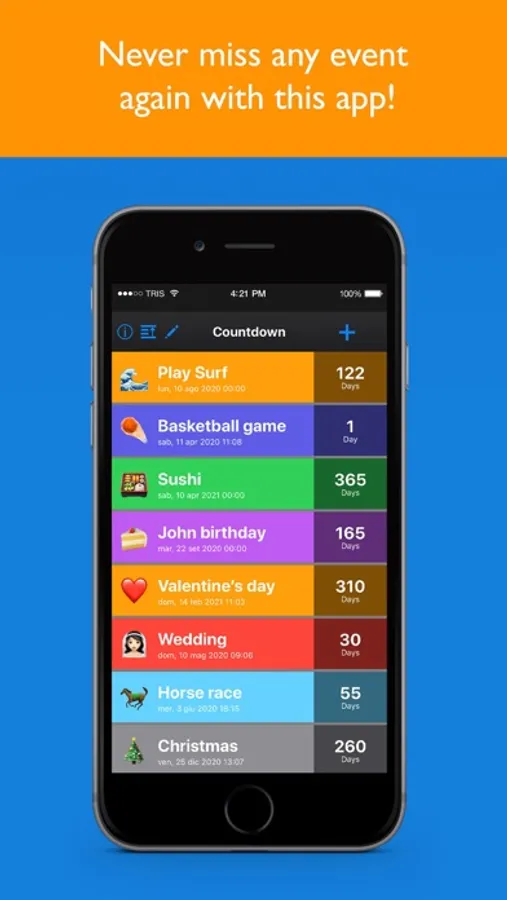 With our countdown app you can add as many events as you want.