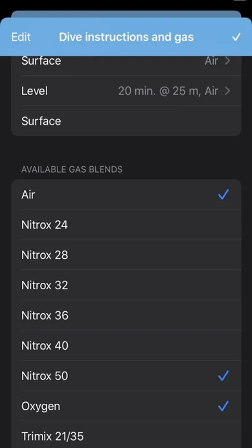 • Full automatic gas switch (from the list of selected gas for the dive) or manual gas switch